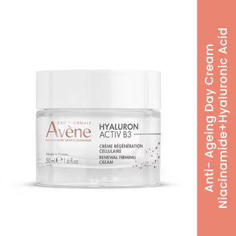 A science-backed innovation that combines 6% niacinamide and two concentrations of hyaluronic acid to address visible signs of aging. Clinically proven to restore a firmer, more radiant complexion. After 15 days of use, 80% of women reported that their skin felt hydrated, smooth, plumped, toned, and radiant.Avene Hyaluron Activ B3 Renewal Firming Cream is formulated with 90% naturally derived ingredients and is 100% vegan. This cream has a velvety texture that provides a firming (tightening) effect and lasting comfort throughout the day. It features a non-greasy, non-sticky finish and offers a natural tone-up effect that illuminates the skin. The texture is designed to support a light massage during application and works well as a makeup base.