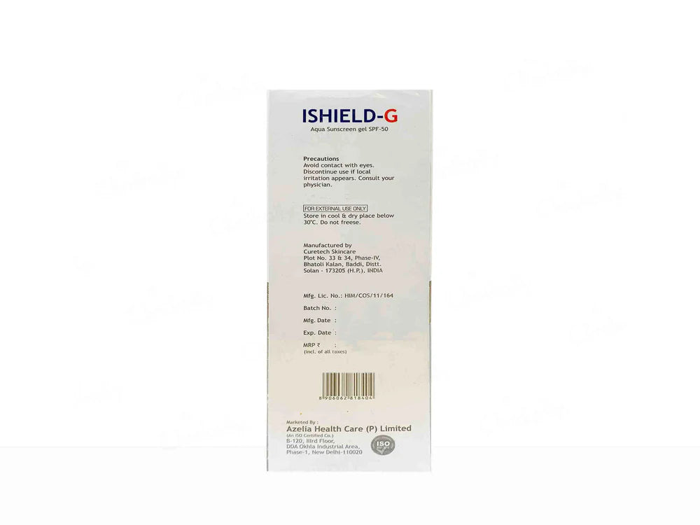 Experience Azelia I-Shield-G Aqua Sunscreen Gel SPF 50, a revolutionary blend of protection and hydration for your skin. This innovative formula combines high SPF 50 protection with a lightweight, non-greasy gel texture enriched with pinebark and aloe vera extract, ensuring your skin stays shielded from harmful UV rays while feeling refreshed and moisturized. Embrace the outdoors with confidence and comfort with this exceptional sunscreen gel with the goodness of glutathione and Vitamin C.