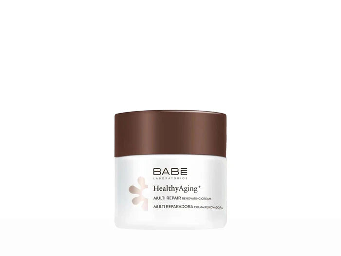 BABE Healthy Aging+ Multi Repair Cream is a luxurious, deeply nourishing treatment designed to target multiple signs of aging while promoting skin repair and renewal. Infused with potent ingredients like Retinol, Peptides, and Hyaluronic Acid, this cream works to reduce the appearance of fine lines, wrinkles, and age spots, while improving skin firmness and elasticity. The rich, moisturizing formula provides intense hydration, restoring the skin's natural barrier and leaving it smooth, supple, and radiant. Ideal for all skin types, this cream is perfect for daily use to achieve a revitalized and youthful complexion.