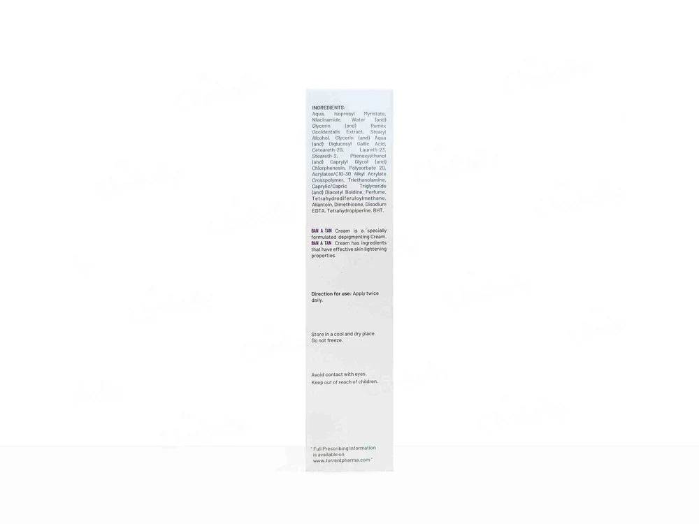 Ban A Tan Depigmenting Cream is a specially formulated skincare solution designed to target tanning, pigmentation, and uneven skin tone. Enriched with niacinamide, Rumex occidentalis extract, lactic acid complex, and powerful botanical actives, it lightens dark spots and promotes a brighter complexion. This dermatologically tested cream also hydrates and soothes the skin, making it suitable for daily use. Ideal for sun-damaged and pigmented skin, Ban A Tan Cream helps restore natural radiance and even tone with consistent application.