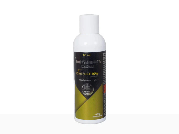 Chekfall-F 10% Topical Solution is a trusted remedy for hair loss and baldness. Featuring Minoxidil and Finasteride, it effectively promotes hair regrowth, especially in men suffering from male pattern baldness. This easy-to-apply solution revitalizes hair follicles, increasing hair density and thickness. It's a reliable choice for regaining a fuller, more youthful head of hair and boosting self-confidence.