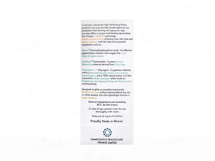 Cirascreen Advance High Performance Sunscreen Gel SPF 50+ PA+++ is a high-protection, broad-spectrum sunscreen specially designed to shield the skin from harmful UVA and UVB rays. Its lightweight, gel-based formula provides long-lasting sun protection while leaving the skin with a matte finish. Ideal for all skin types, including oily and acne-prone skin, this non-greasy sunscreen helps prevent sunburn, skin damage, and premature aging. The quick-absorbing formula ensures that the skin feels fresh and non-sticky throughout the day, making it perfect for everyday use and outdoor activities.
