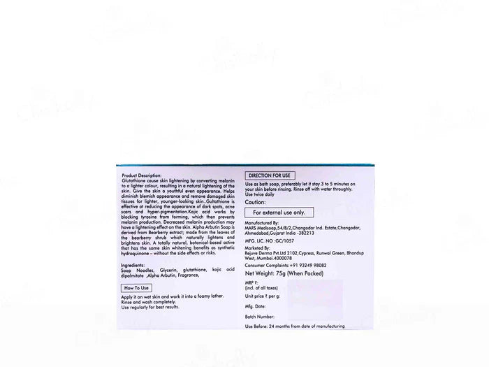 Wet your skin with lukewarm water. Gently lather the Cutiage Mela Bar between your hands or apply directly to your face and body. Massage the lather onto your skin, focusing on areas with pigmentation. Rinse thoroughly with water and pat your skin dry. Use twice daily for best results.
