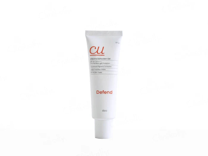 Diara CU Silicone Sunscreen Gel SPF 60 PA++++ is a lightweight, matte-finish silicone-based sunscreen designed to defend the skin against UVB, UVA, and urban pollution, using its key ingredients PolluStop™™, Melazero™, and Advanced UV Filters to provide strong photoprotection, pigmentation correction support, and an anti-pollution shield without clogging pores or leaving a white cast, making it suitable for all skin types and ideal for daily wear due to its fragrance-free, water-resistant formulation.