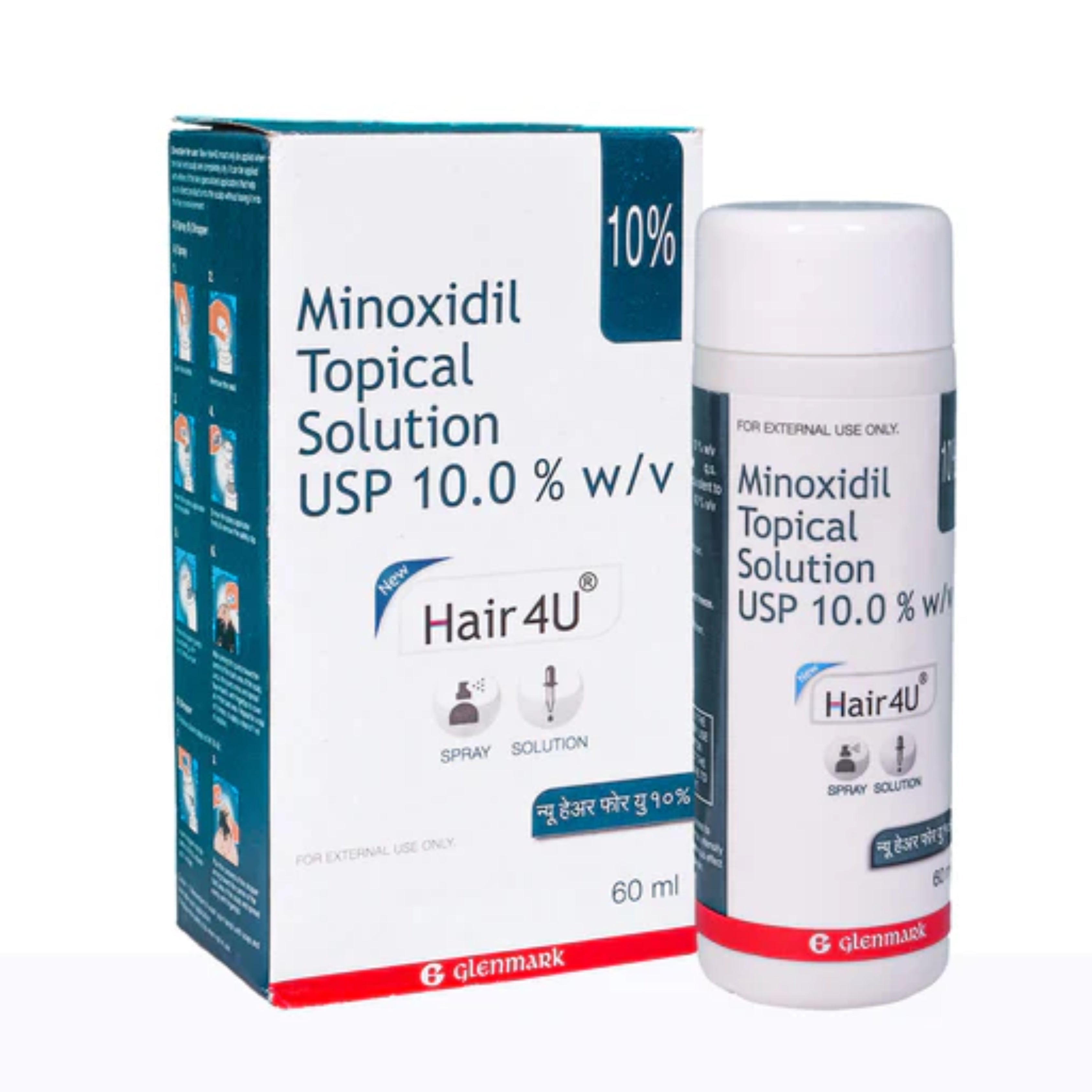 Hair 4U 10% Solution is a medication containing the active ingredient Minoxidil. It is commonly used to treat hair loss, particularly in cases of male pattern baldness and female pattern hair loss. This easy-to-apply solution revitalizes hair follicles, increasing hair density and thickness. It's a reliable choice for regaining a fuller, more youthful head of hair and boosting self-confidence.