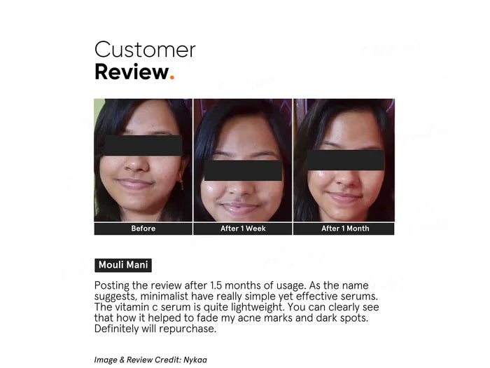 Minimalist 10% Vitamin C Serum is a powerful antioxidant treatment designed to brighten the skin, even out skin tone, and reduce the appearance of dark spots and hyperpigmentation. Formulated with 10% stable Vitamin C (Ethyl Ascorbic Acid), this serum helps to neutralize free radicals, boost collagen production, and enhance skin radiance. Enriched with additional hydrating and soothing ingredients, it promotes a youthful, glowing complexion while improving skin texture and reducing signs of aging. Suitable for all skin types, this lightweight and non-greasy serum is perfect for daily use.