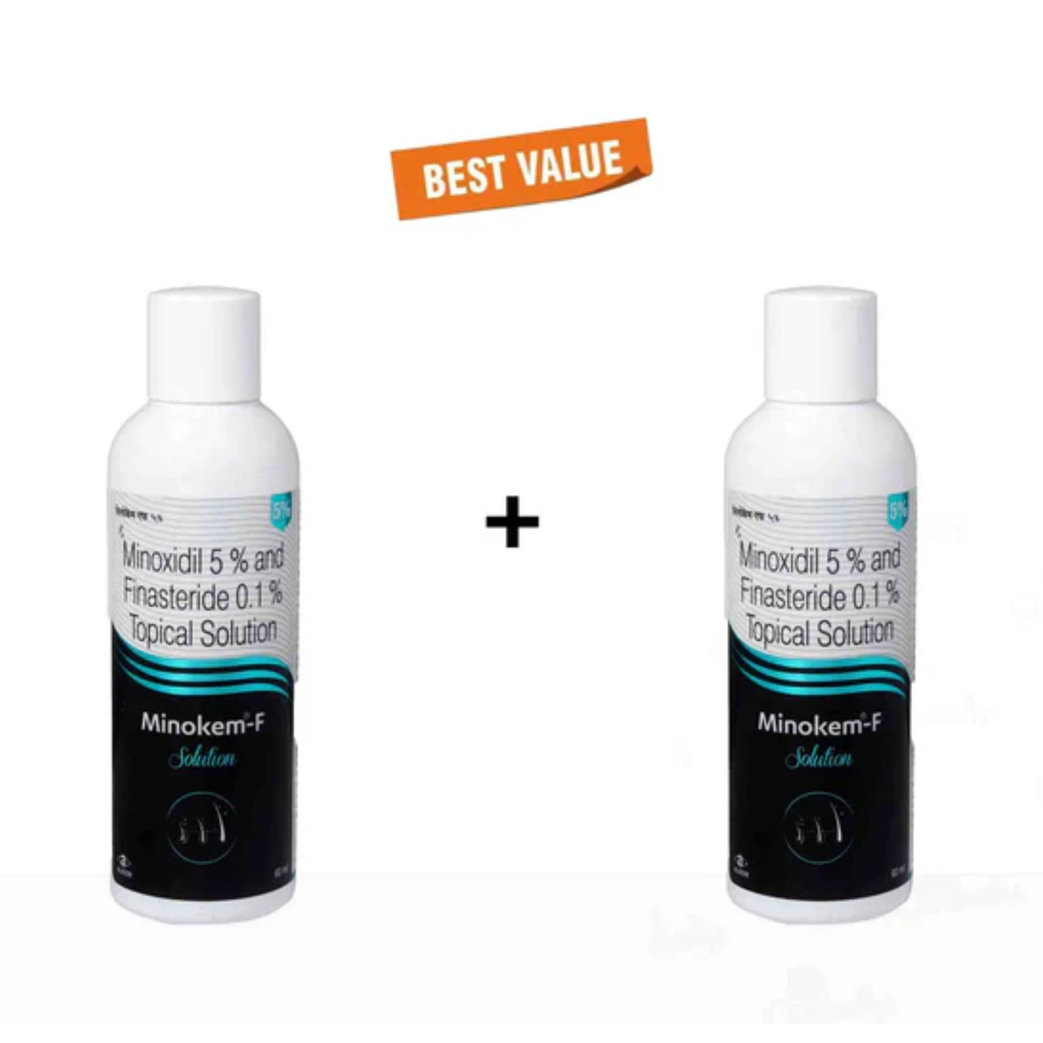 Minokem-F 5% Solution is a trusted remedy for hair loss and baldness. Featuring Minoxidil and Finasteride, it effectively promotes hair regrowth, especially in men suffering from male pattern baldness. This easy-to-apply solution revitalizes hair follicles, increasing hair density and thickness. It's a reliable choice for regaining a fuller, more youthful head of hair and boosting self-confidence.