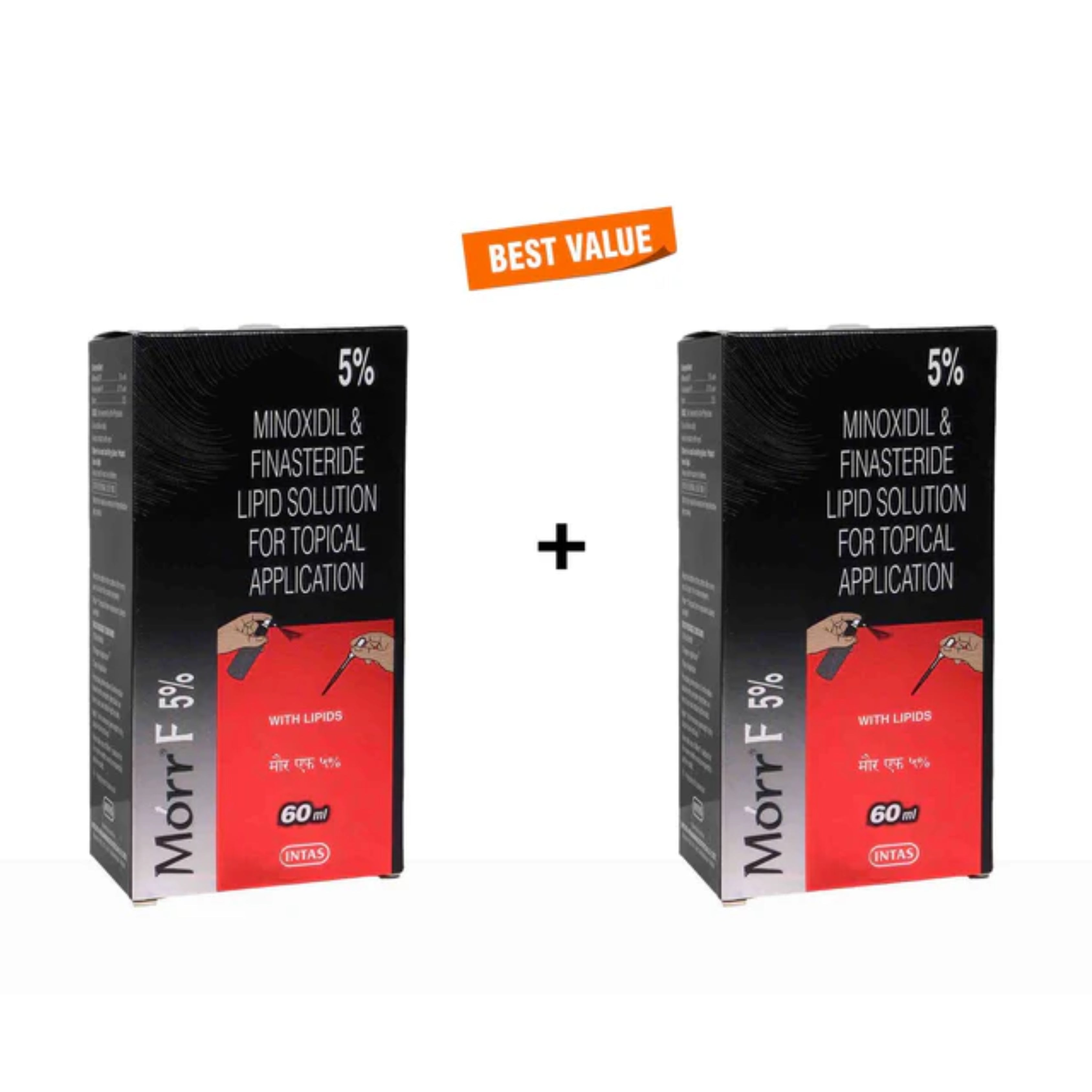 Morr F 5% Solution is a trusted remedy for hair loss and baldness. Featuring Minoxidil and Finasteride, it effectively promotes hair regrowth, especially in men suffering from male pattern baldness. This easy-to-apply solution revitalizes hair follicles, increasing hair density and thickness. It's a reliable choice for regaining a fuller, more youthful head of hair and boosting self-confidence.