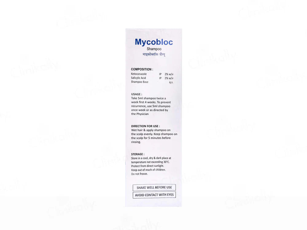 Mycobloc Shampoo is a medicated anti-dandruff formulation containing 2% Ketoconazole and 2% Salicylic Acid, designed to relieve flaking, scaling, and itching caused by dandruff and seborrheic dermatitis. Enriched with Pentavitin, it hydrates the scalp, soothes irritation, and helps maintain barrier integrity. The paraben-free base ensures gentle cleansing without harsh effects, making it suitable for all hair types. Mycobloc Shampoo nourishes the scalp, clears dandruff buildup, and supports a healthier scalp environment with regular use.