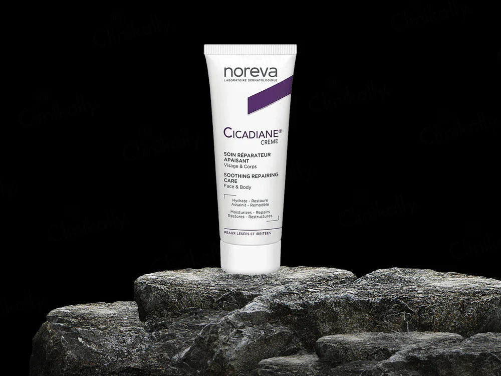 Noreva Cicadiane Soothing Repairing Face & Body Care Cream is a highly effective formula designed to accelerate skin repair and provide lasting relief for dry, damaged, or irritated skin. Its soothing, moisturizing, and repairing properties make it suitable for the entire family, including sensitive skin. The non-scented, light texture penetrates quickly, offering visible relief within 30 seconds. This patented complex cream helps to restore the skin's natural barrier and improve overall skin health.