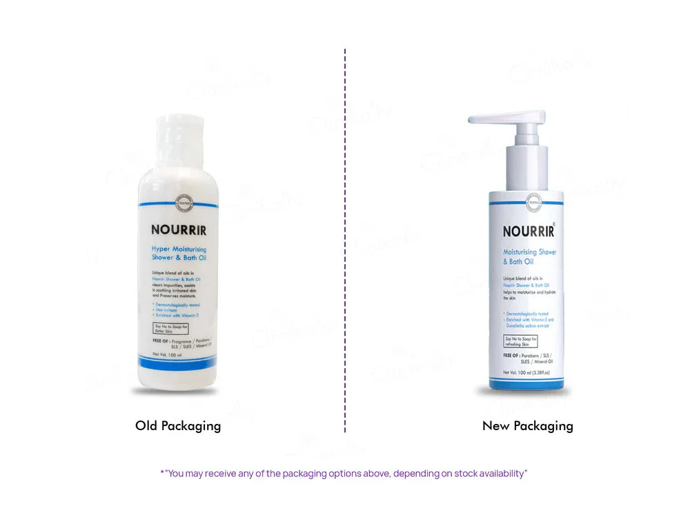 Nourrir Moisturising Shower & Bath Oil is a unique blend of oils that helps clear impurities, soothes irritated skin, and preserve moisture. It is dermatologically tested, non-irritant, and enriched with Vitamin E.