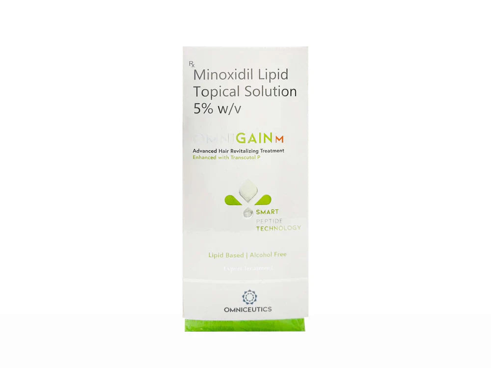 Omnigain M Topical Solution is a trusted remedy for hair loss and baldness. Featuring Minoxidil, it effectively promotes hair regrowth, especially in men suffering from male pattern baldness. This easy-to-apply solution revitalizes hair follicles, increasing hair density and thickness. Omnigain M Topical Solution is a reliable choice for regaining a fuller, more youthful head of hair and boosting self-confidence.