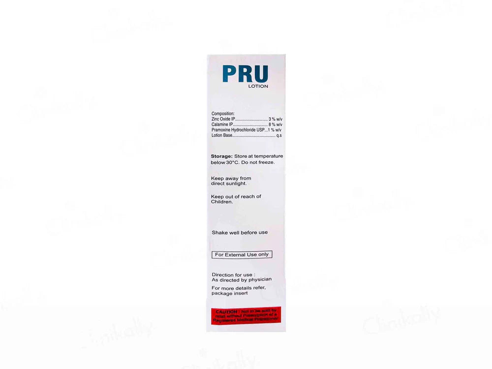 Pru Lotion is a topical moisturizing lotion designed to relieve itchy and irritated skin. It contains active ingredients such as pramoxine, calamine, aloe vera, and zinc oxide, which work together to provide rapid and long-lasting relief from itching while soothing and calming the skin. Pramoxine blocks nerve signals responsible for itch, calamine provides a cooling effect, aloe vera moisturizes and calms, and zinc oxide offers antibacterial and anti-inflammatory benefits.