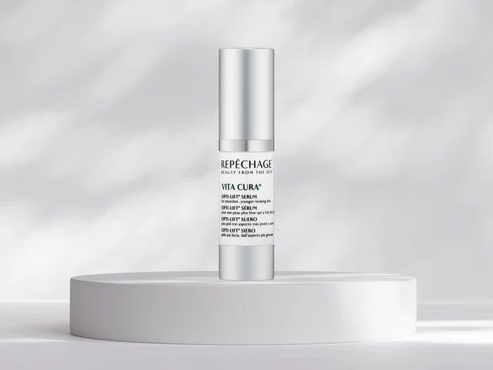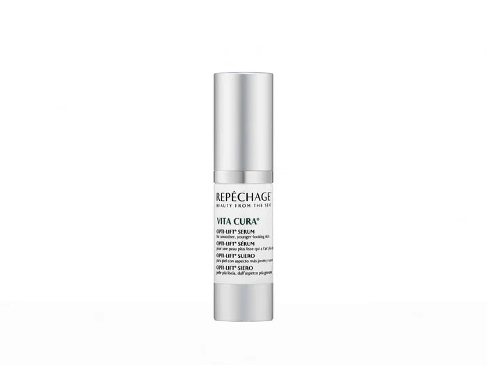 Repechage Vita Cura Opti-Lift Serum is an advanced anti-aging treatment that combines marine and botanical actives for visible lifting and rejuvenation. The formula features Ulva Lactuca (Sea Lettuce) for marine collagen stimulation, Sweet Almond Oil for deep nourishment, Ginkgo Biloba to improve circulation and oxygenation, and Horse Chestnut to strengthen skin structure. This potent yet gentle serum targets loss of elasticity, fine lines, and uneven texture while providing antioxidant protection. The silky texture absorbs instantly, creating a smooth canvas for makeup application.