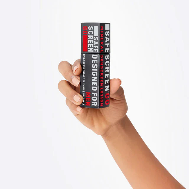 SAFESCREEN Go is a lightweight, beard-friendly mineral sunscreen designed for active men. With buildable SPF, it offers seamless sun protection that fits effortlessly into your routine, ensuring your skin stays protected, fresh, and ready for any adventure.