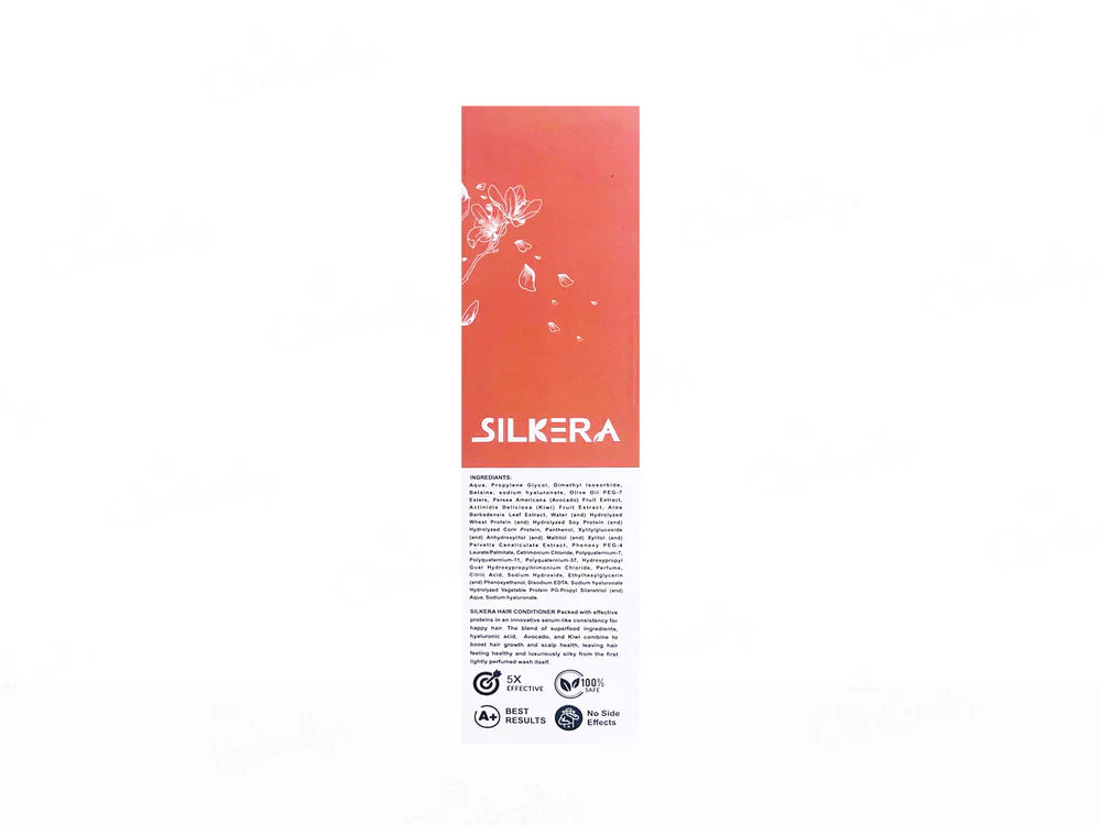 Silkera Hair Conditioner is a luxurious serum-like formula enriched with a powerful blend of Hyaluronic Acid, D-Panthenol, Keravis邃「PE, and botanical extracts to deeply nourish dry, frizzy, and damaged hair. It combines the benefits of avocado, olive, and kiwi extracts to restore moisture, smoothen strands, and enhance manageability. Infused with hydrolyzed proteins and natural lipids, this conditioner strengthens hair from root to tip, leaving it soft, shiny, and resilient after every wash.