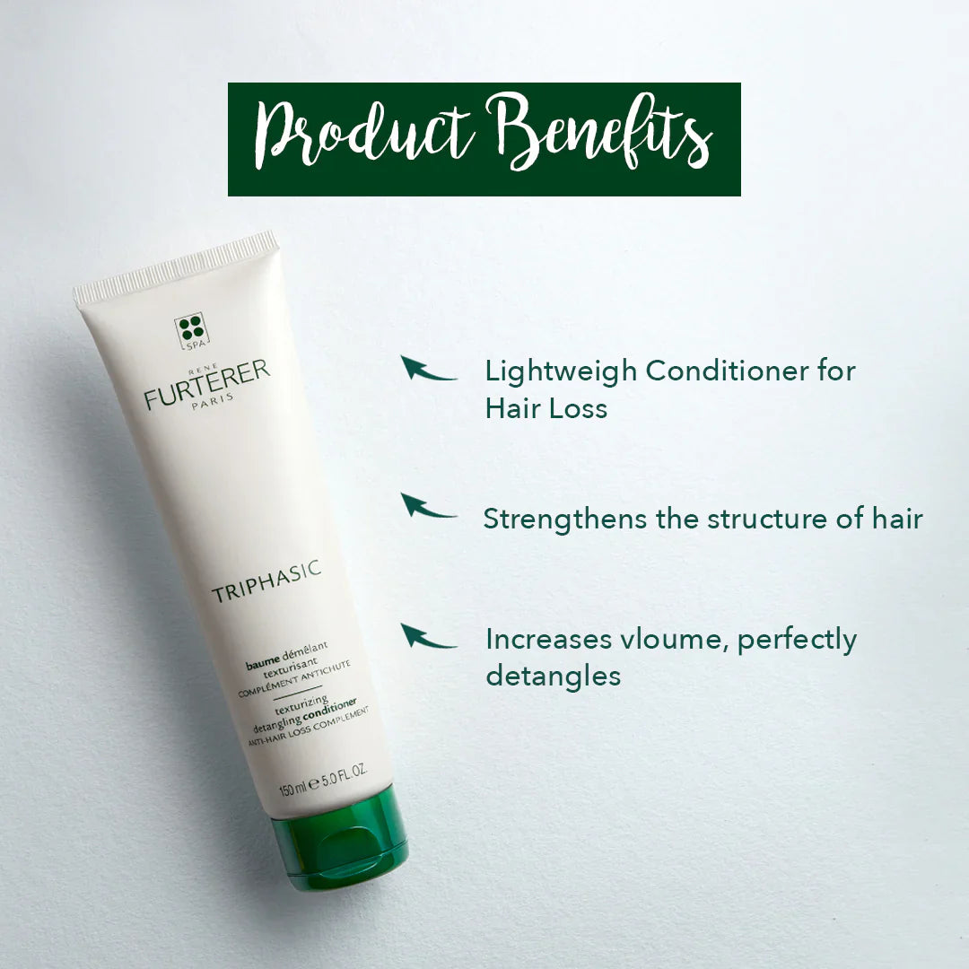 With its complex of key ingredients, natural-origin extract of Pfaffia and ATP, this texturizing conditioner fits perfectly into the TRIPHASIC thinning hair range. Enriched with texturizing wheat proteins, it strengthens the hair, detangles perfectly and visibly increases volume. Existing hair is strengthened. Hair is resilient, easy to detangle, soft and radiant.