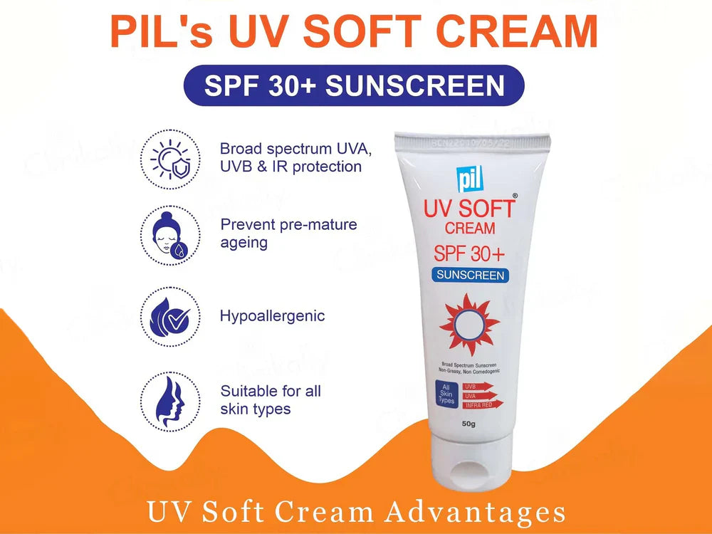 UV Soft Cream Sunscreen SPF 30+ is a lightweight, non-greasy sunscreen designed for effective broad-spectrum protection against UVA and UVB rays. Its paraben-free formula ensures safe use on all skin types, including sensitive skin. Enriched with hydrating ingredients, it absorbs quickly, leaving the skin soft, smooth, and free from oily residue. Ideal for daily use, this sunscreen protects against sun damage while maintaining skin moisture, making it an essential part of your skincare routine.