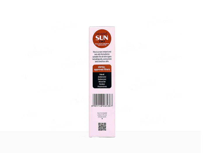 Venusia Sun Tint Velvet Touch Sunscreen Gel SPF 115+ PA++++ provides superior broad-spectrum protection against IR, Blue light, Visible light, UVA and UVB rays. Its lightweight, non-greasy formula with a tinted finish evens out skin tone, reduces pigmentation and redness while protecting against sun damage. Ideal for all skin types, this sunscreen gel absorbs quickly, leaving a velvet-like finish without white cast and ensuring high-level protection for extended outdoor activities.