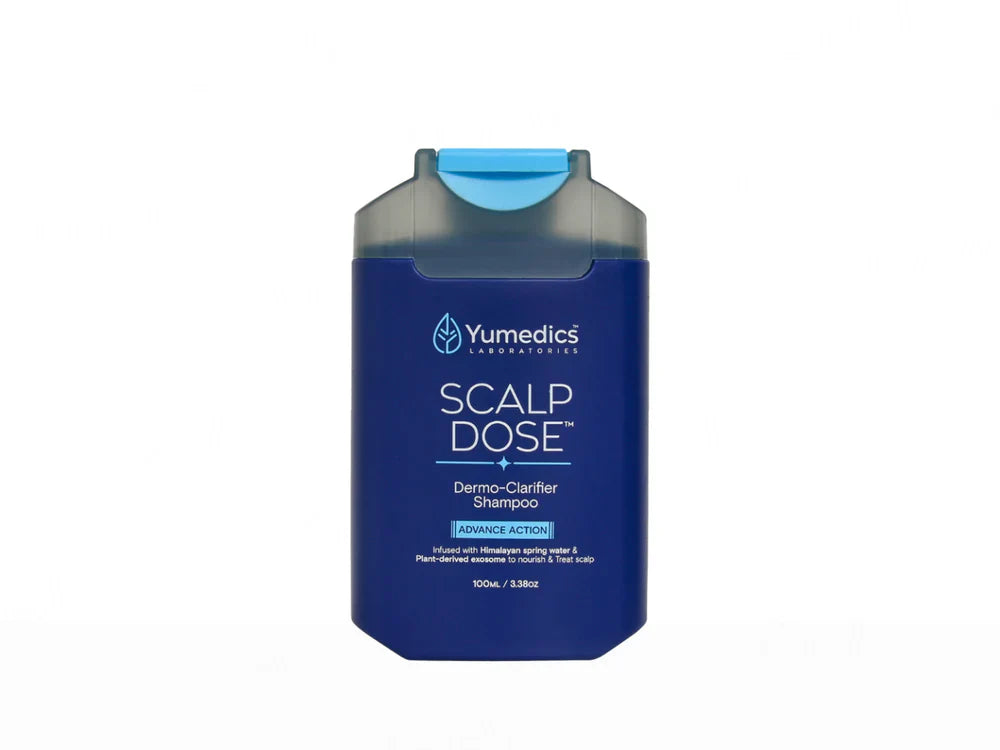 Yumedics Scalp Dose Advance Action Dermo-Clarifier Shampoo is a therapeutic scalp treatment that deeply purifies while restoring moisture balance. Formulated with Himalayan water and plant exosomes, it removes buildup, soothes irritation, and promotes healthier hair growth. The pH-balanced formula clarifies without stripping natural oils, making it ideal for flaky, oily, or sensitive scalps.
